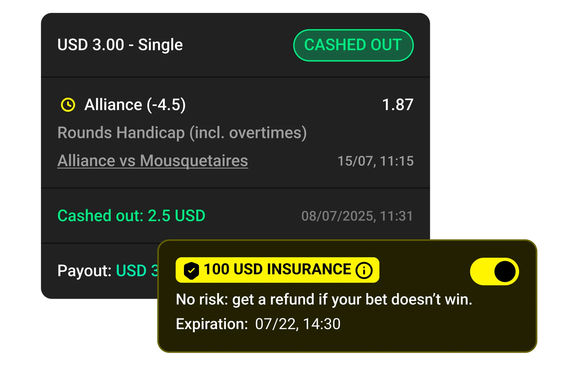 Bet Insurance protects players stakes by securing a payout even if the stake loses. Coverage can be set as a fixed sum or a percentage, offering flexibility for both users and operators.