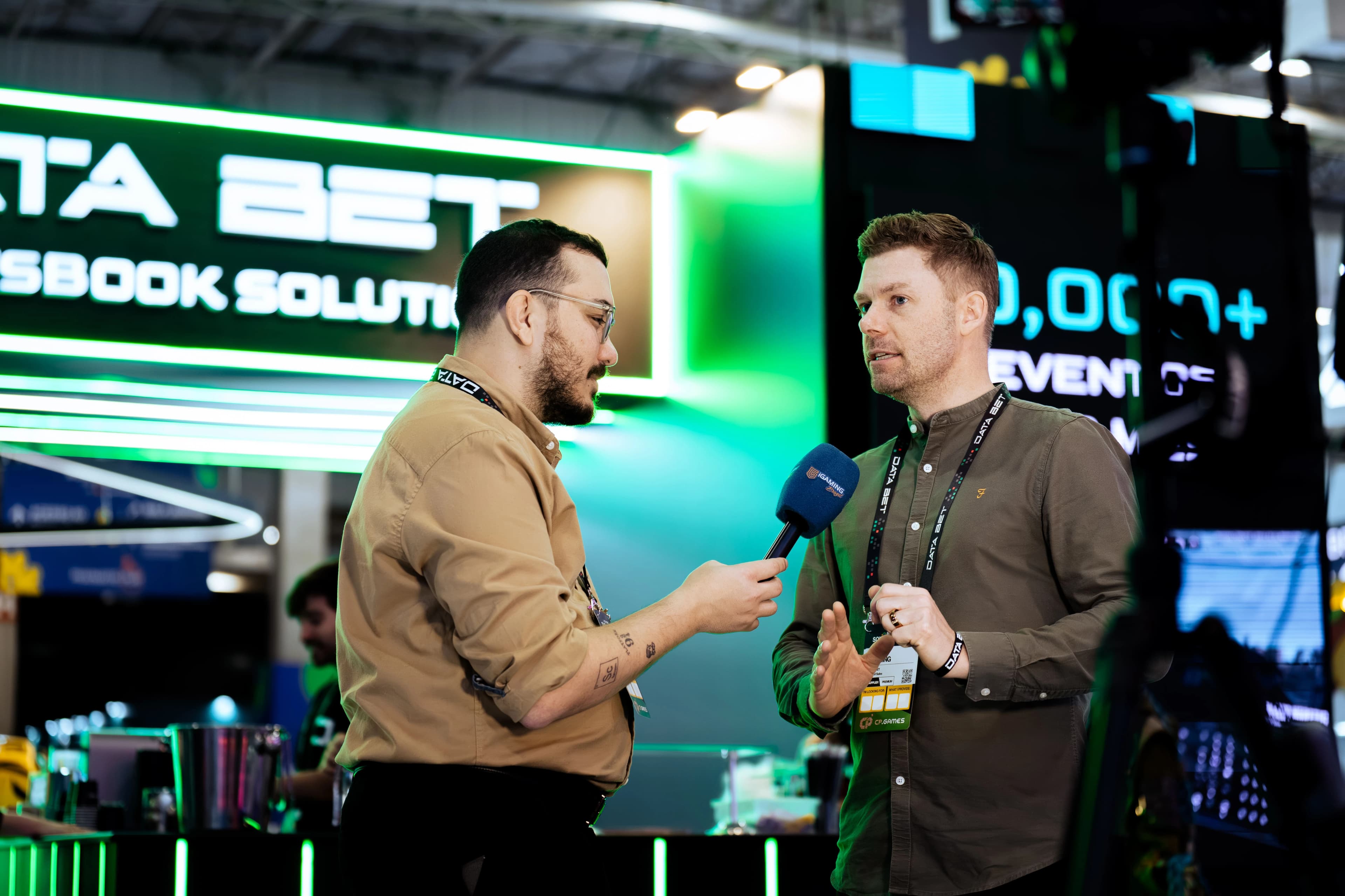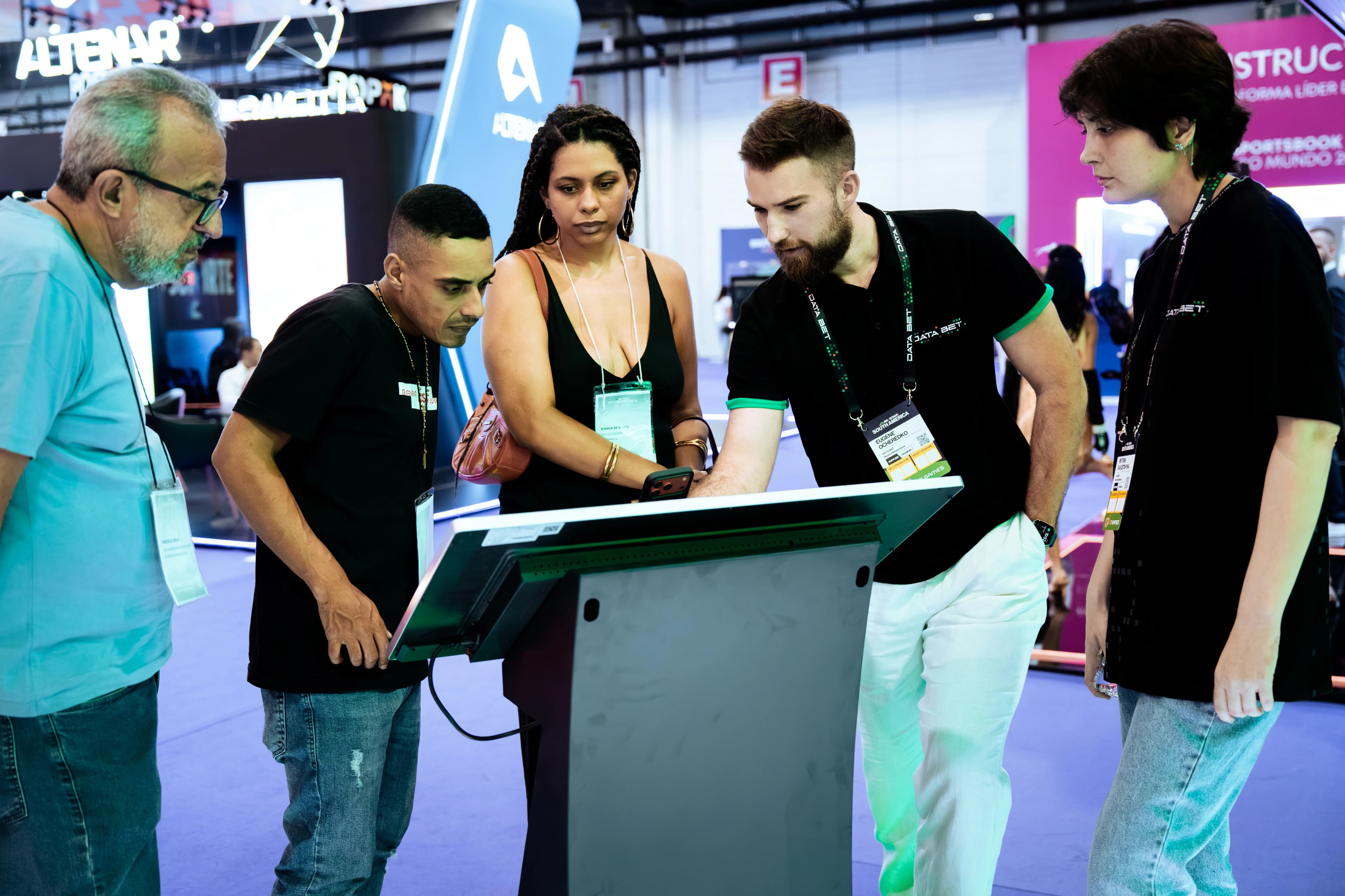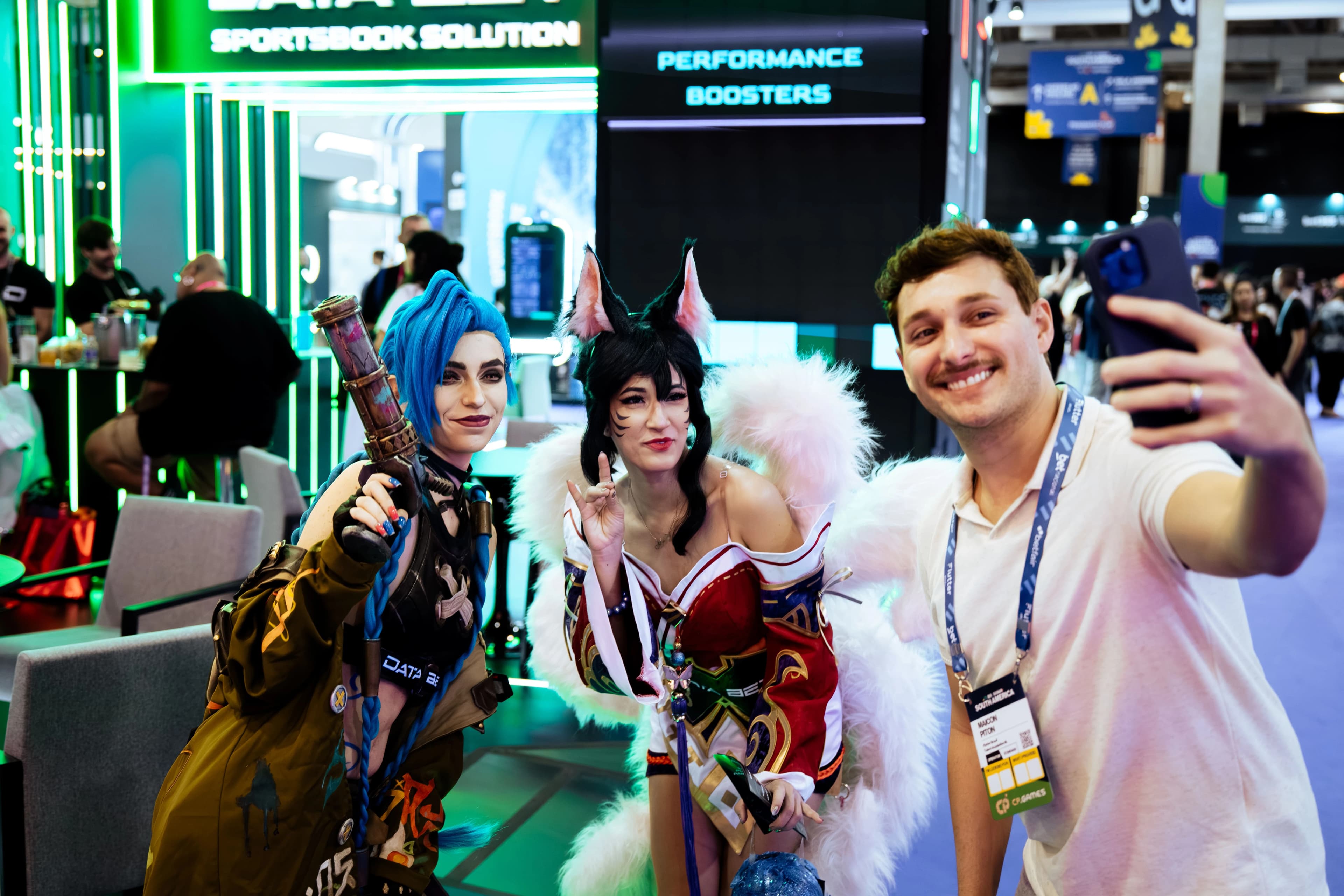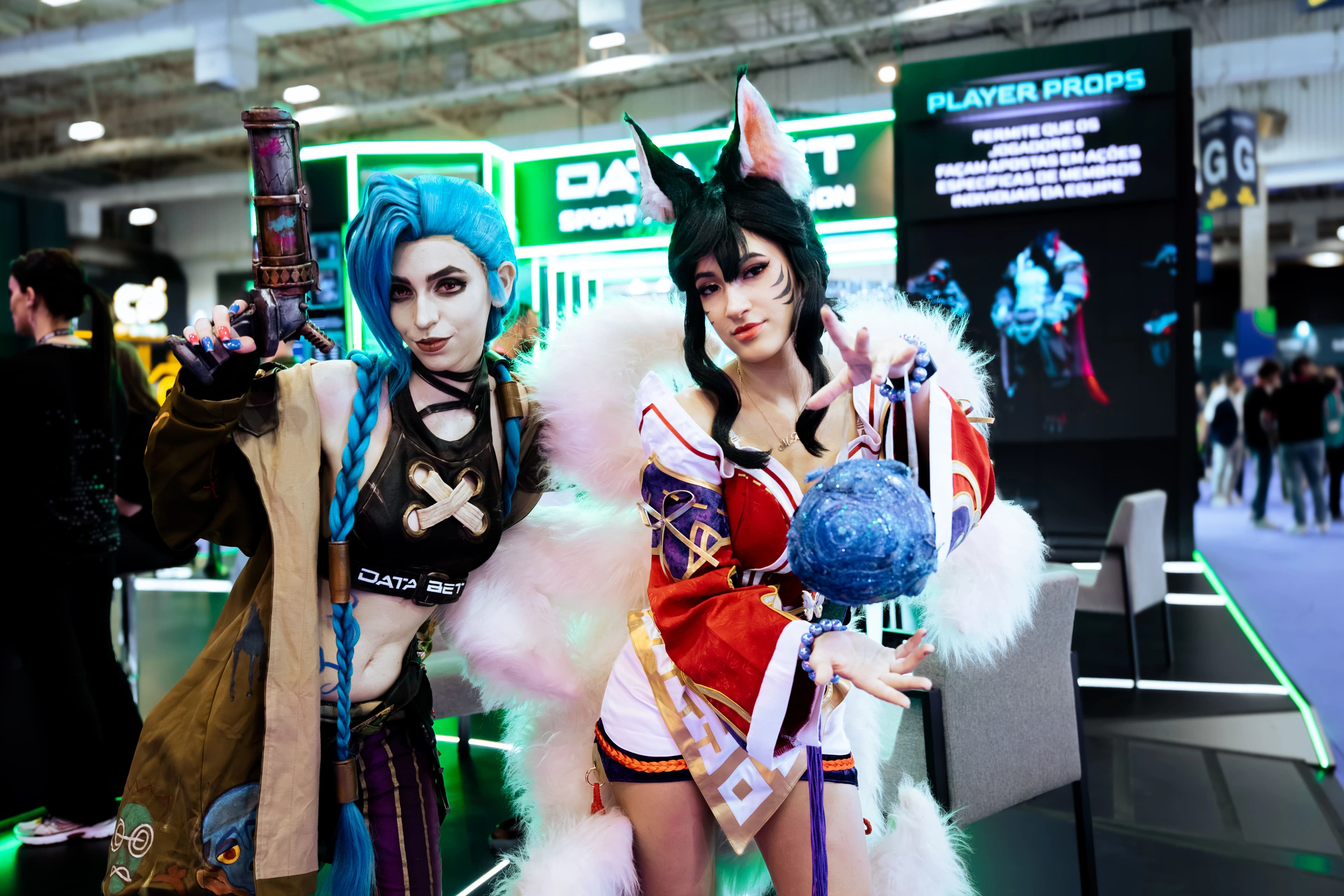 The stand brought the energy visitors have come to expect from DATA.BET. Cosplayers dressed as Jinx and Ahri, fan-favorite characters from League of Legends, drew consistent attention throughout the event, while a kinetic screen added an interactive visual element that kept foot traffic engaged.