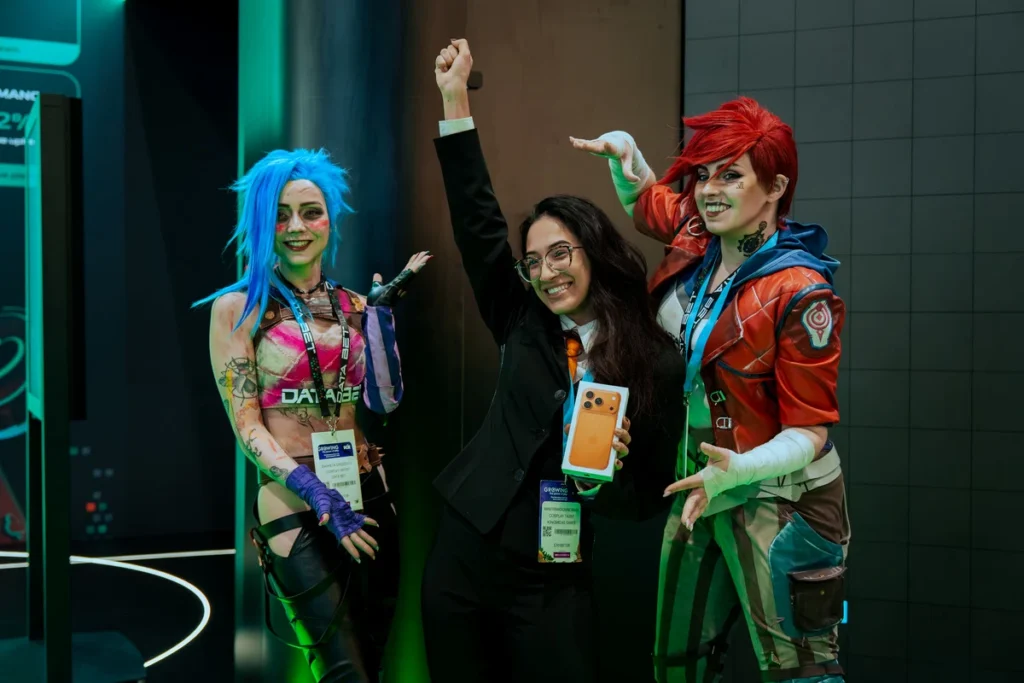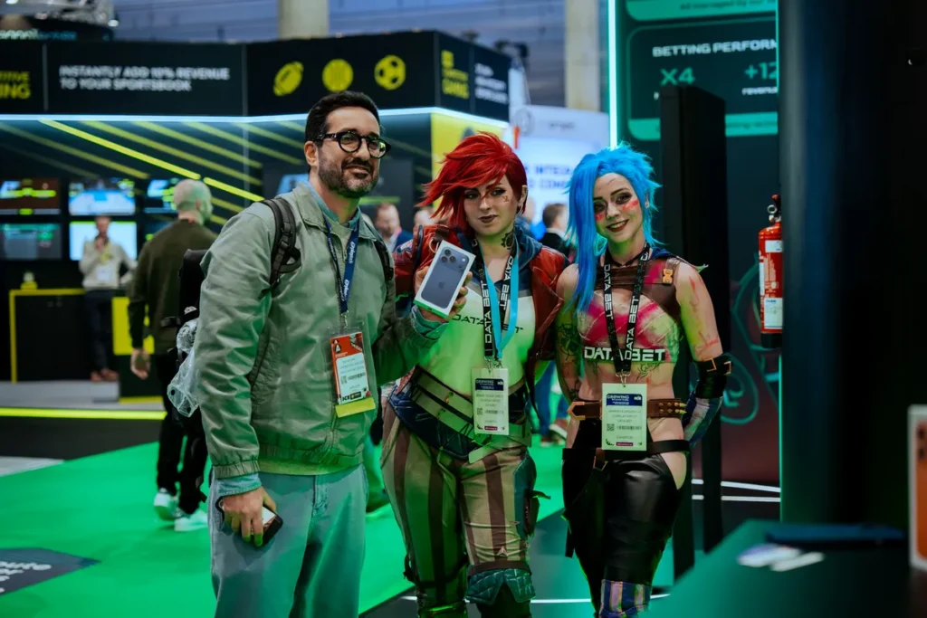 The stand quickly evolved into a lively interaction zone. Visitors gathered to take photos with cosplayers portraying Jinx & Vi from League of Legends, reinforcing that, even as DATA.BET enters a new stage of growth, and its esports offering remains one of the strongest on the market, firmly positioning the company as a trusted provider of high-performance esports betting solutions. A giveaway activation with two iPhone Pro devices awarded, further amplified engagement, encouraging repeat visits and spontaneous conversations.